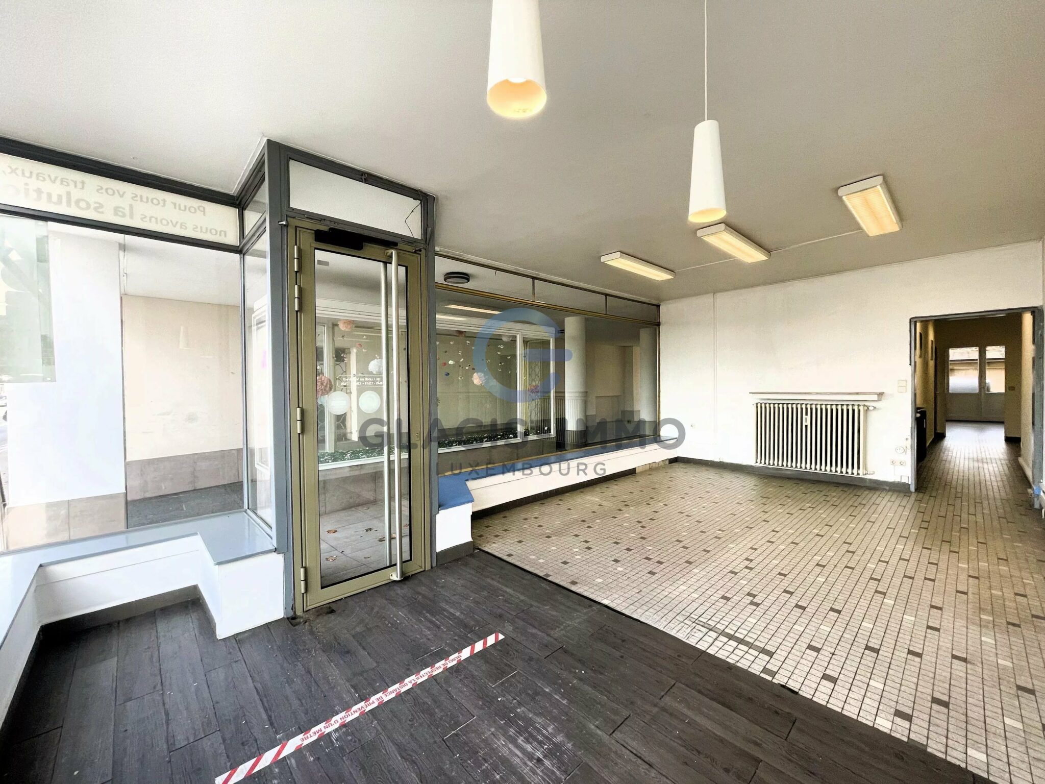 Ce local commercial se compose d'une grande pièce côté rue avec vitrine d’angle et l'entrée principale.