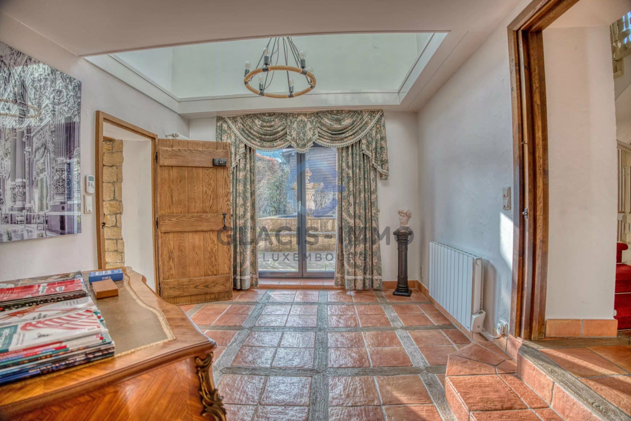 Hall : 12 m² avec une hauteur sous plafond de 5 m